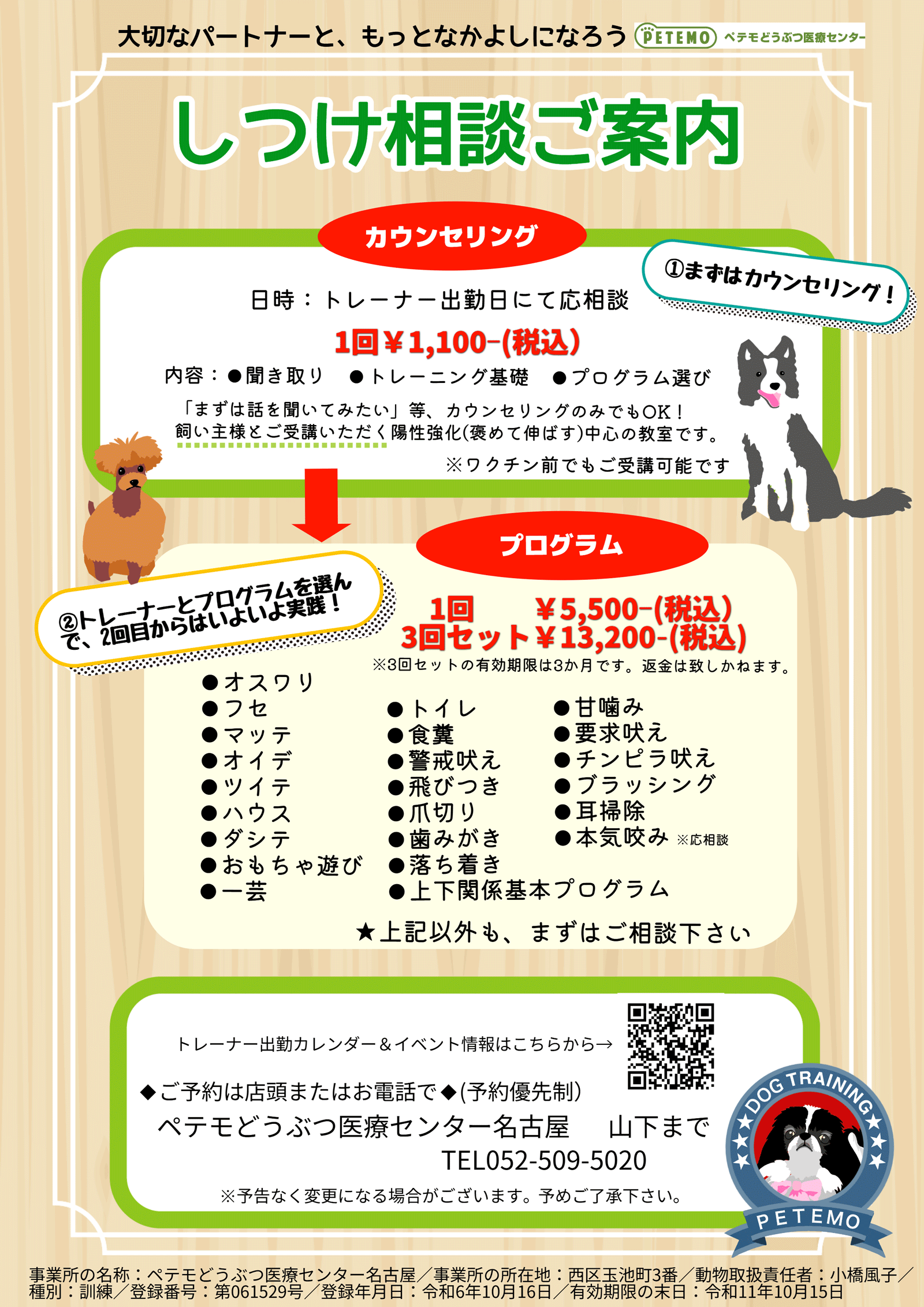 2回目~トレーニングへ 詳しくはこちらをご覧ください→しつけ相談ご案内 |